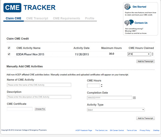 The cme tracker shows moc points and cme credits as well as loc credits for physicians.
