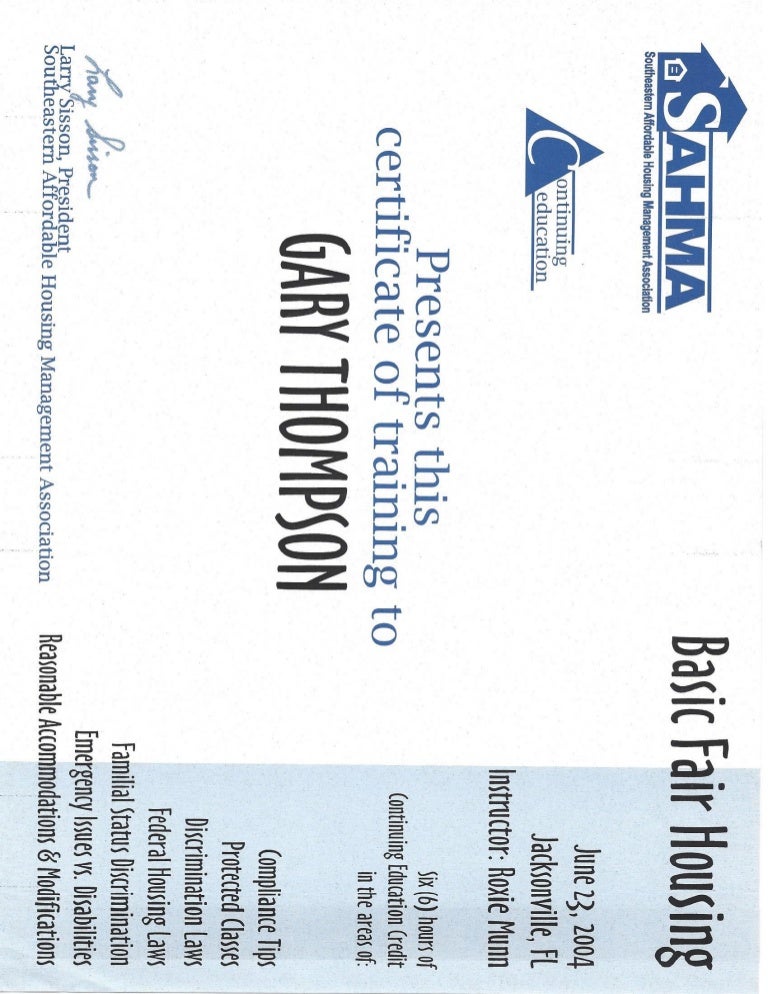 Fair housing certificate schools and certifications. Fair housing training is at the core of operations, risk mitigation, and professional development for training time: Fulton county is committed to building an environment where everyone can choose to live where they want to the federal fair housing act prohibits housing discrimination based on Fair housing specialist (fhs) is an online certification course that will equip you with the knowledge and understanding you need to steer clear of fair housing violations.